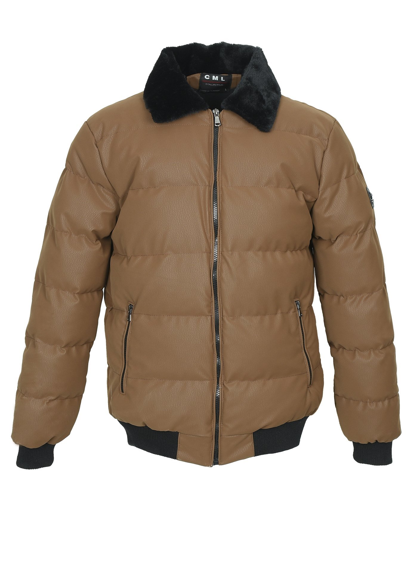 Yakası Kürklü Beli Ve Kolu Lastikli Spor Mont Taba Renk